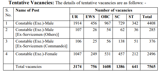 SSC Delhi Police Constable Vacancy 2025 – Vacancy Details